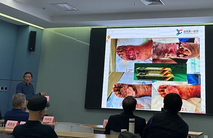 12月12日,《中國燒傷創(chuàng)瘍雜志》編委、燒傷創(chuàng)瘍再生醫(yī)療技術臨床專家張強教授,應華中科技大學協(xié)和東西湖醫(yī)院血管外科章萬勇主任邀請,開展了《再生醫(yī)療技術在難治性創(chuàng)瘍的治療》的培訓講座,張教授分享了下肢動靜脈潰瘍、糖尿病性足部潰瘍通過開通血管,局部采用再生醫(yī)療技術治療應注意的要點和細節(jié)問題。隨后到病房會診了一例大隱靜脈曲張引起的下肢末端潰瘍病人,張教授還親自示范規(guī)范換藥及注意事項,并針對后期的治療方案提出可操作性建議!