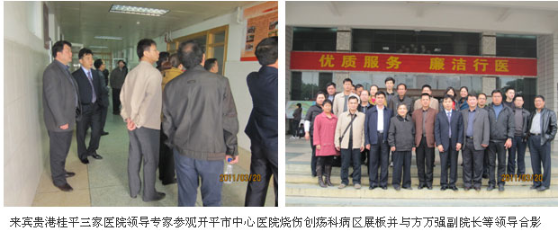 通過(guò)對(duì)開平市中心醫(yī)院、廣州市中西醫(yī)結(jié)合醫(yī)院兩家醫(yī)院的參觀交流后,桂平市中醫(yī)醫(yī)院的韋國(guó)雨副院長(zhǎng)、大骨科主任黎小琳、大外科主任黎海都表示要立即把燒傷創(chuàng)瘍科組建起來(lái),把燒傷再生醫(yī)學(xué)與療法相關(guān)技術(shù)應(yīng)用到各類燒傷及難愈性創(chuàng)面的治療中,以造福180萬(wàn)桂平人民。