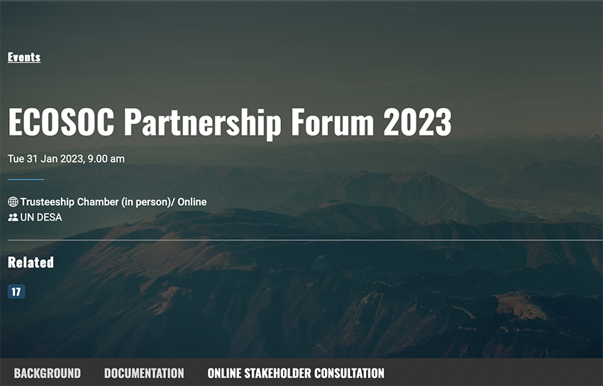 聯(lián)合國(guó)經(jīng)濟(jì)及社會(huì)理事會(huì)(ECOSOC)2023年伙伴關(guān)系論壇將于美東時(shí)間2023年1月在紐約聯(lián)合國(guó)總部舉行,而基于 “加快新冠疫情(COVID-19)后修復(fù),全面落實(shí)2030年可持續(xù)發(fā)展議程”的目標(biāo),聯(lián)合國(guó)經(jīng)濟(jì)及社會(huì)理事會(huì)旨在通過(guò)匯集聯(lián)合國(guó)各成員國(guó)和利益攸關(guān)方——包括國(guó)際組織、地方政府、非政府組織、私營(yíng)部門、民間社團(tuán)以及科學(xué)家、學(xué)術(shù)界、婦女、青年等——以創(chuàng)新方式,推動(dòng)聯(lián)合國(guó)可持續(xù)發(fā)展目標(biāo)(SDGs)的實(shí)現(xiàn),并特別強(qiáng)調(diào)伙伴關(guān)系在這方面可發(fā)揮的重要作用。
