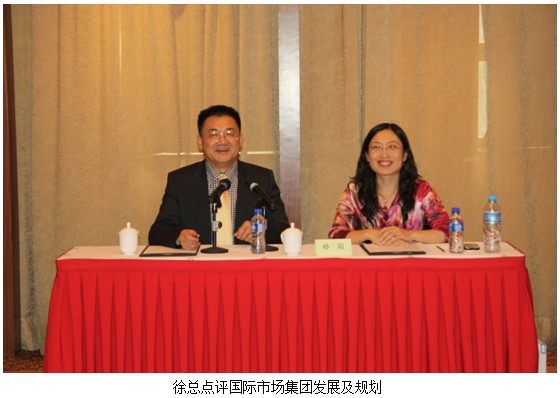 徐總說道,國際市場集團(tuán)三年來飛速發(fā)展,同時每一名員工都伴隨著企業(yè)取得了長足的成長,擔(dān)負(fù)起除美國外整個海外國際市場的經(jīng)營發(fā)展重任。北京總部連同海外多家分公司、組織機構(gòu),如今已經(jīng)成為大集團(tuán)下最為重要的集團(tuán)之一。徐總的點評讓整個集團(tuán)的員工士氣高漲,信心倍增,相信只要我們能夠堅定不移地遵從徐總的“大科學(xué)、大經(jīng)濟(jì)、大發(fā)展”戰(zhàn)略決策,團(tuán)結(jié)一致,奮力拼搏,2012年國際市場集團(tuán)將與大集團(tuán)一同發(fā)展得越來越好,飛的越來越高!