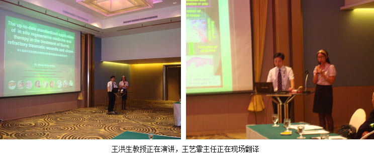 經(jīng)過會前周密地組織和籌劃安排,2011年9月13日晚六點,美寶再生醫(yī)學(xué)專場研討會在曼谷Dusit Princess酒店一層宴會廳舉行。此次研討會是專門為在亞太燒傷會議上不能充分了解夠美寶的國外專家舉辦的一次學(xué)術(shù)互動;同時,也是亞太會議上分享再生醫(yī)學(xué)經(jīng)驗的專家舉行的一次集體聚會,目的是專門為專家們提供更多一次的機會來深入了解美寶再生科學(xué)理論和臨床應(yīng)用實踐。深受再生科學(xué)的吸引,有來自中國,泰國,敘利亞,馬來西亞,印度尼西亞和印度的20余名專家醫(yī)生放棄了APBC的集體宴會,專程來參加美寶再生醫(yī)學(xué)專場研討會。