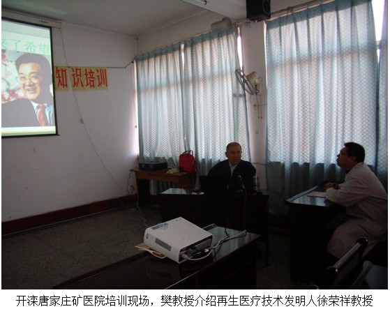 2012年11月1日下午,樊教授應(yīng)邀來(lái)到唐山市遷西縣中醫(yī)院進(jìn)行再生醫(yī)療技術(shù)的院內(nèi)培訓(xùn),50多該院醫(yī)護(hù)人員接受了培訓(xùn);2012年11月6日下午,樊教授應(yīng)邀來(lái)到了唐山市古冶區(qū)開(kāi)灤唐家莊礦醫(yī)院進(jìn)行再生醫(yī)療技術(shù)的培訓(xùn),開(kāi)灤唐家莊礦醫(yī)院是開(kāi)灤醫(yī)療集團(tuán)下屬的一個(gè)二甲醫(yī)院,參加培訓(xùn)的醫(yī)護(hù)人員有70人次;2012年11月7日下午,樊教授應(yīng)邀來(lái)到豐潤(rùn)區(qū)人民醫(yī)院進(jìn)行再生醫(yī)療技術(shù)的院內(nèi)培訓(xùn),豐潤(rùn)區(qū)人民醫(yī)院是當(dāng)?shù)匾?guī)模最大,最具影響力的二甲醫(yī)院,參加培訓(xùn)的醫(yī)護(hù)人員有70人次;2012年11月8日下午,樊教授應(yīng)邀來(lái)到秦皇島市骨科醫(yī)院開(kāi)展再生醫(yī)療技術(shù)的院內(nèi)培訓(xùn),秦皇島市骨科醫(yī)院是秦皇島市唯一一家市級(jí)??漆t(yī)院,對(duì)骨科,骨傷,外傷的治療方面有相當(dāng)?shù)穆曌u(yù)。參加培訓(xùn)的醫(yī)護(hù)人員有40人次。