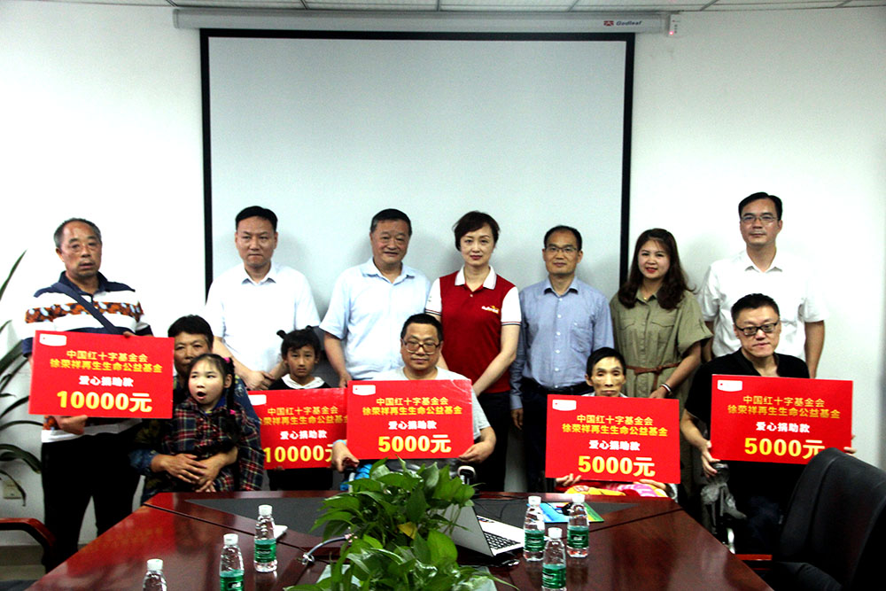 2019年6月27日,中國(guó)紅基會(huì)徐榮祥再生生命公益基金為雅安市人民醫(yī)院的5名貧困患者送去愛心捐贈(zèng),幫助他們戰(zhàn)勝病魔,度過難關(guān)。