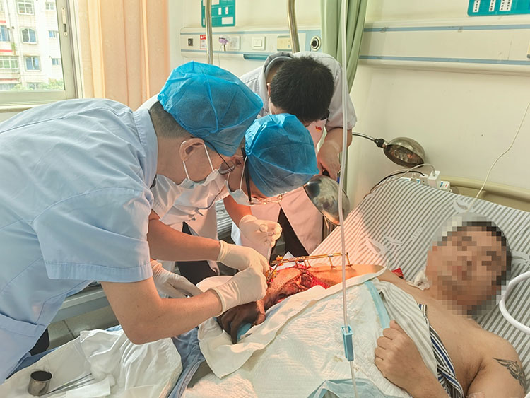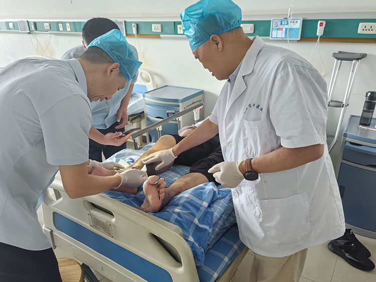 2025年6月25日,應湖北宜昌國藥葛洲壩中心醫(yī)院三峽院區(qū)及宜昌夷陵弘仁康復醫(yī)院邀請,《中國燒傷創(chuàng)瘍雜志》編委、燒傷創(chuàng)瘍再生醫(yī)療技術臨床專家張強,會診了五例慢性創(chuàng)面患者。通過換藥講解處理細節(jié),解惑答疑,受到醫(yī)護工作者及家屬的一致好評!