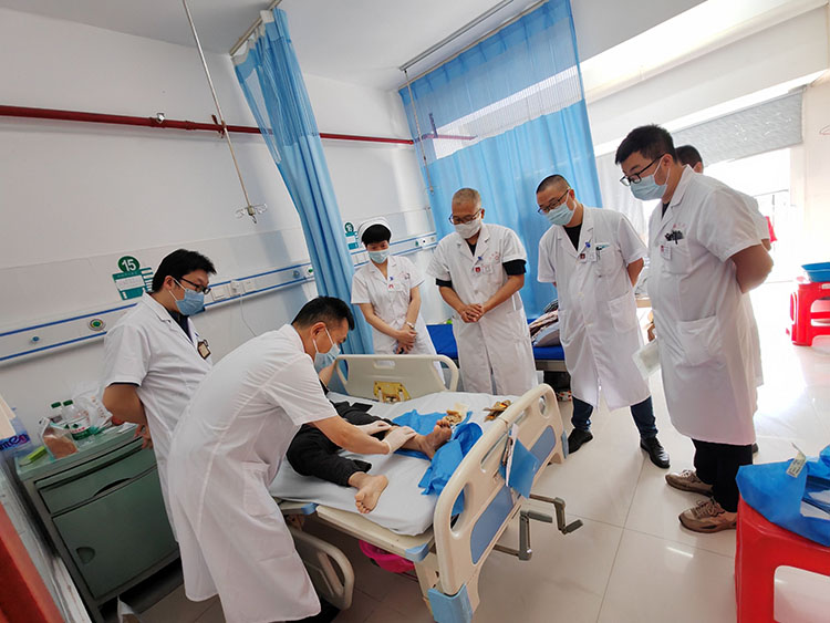 6月17日,中國中西醫(yī)結合學會燒傷專業(yè)委員會常務委員、《中國燒傷創(chuàng)瘍雜志》副總編輯王洪生,應海吉亞醫(yī)療集團龍巖市博愛醫(yī)院創(chuàng)傷、手足外科周龍輝主任邀請,到醫(yī)院會診緊急病人,王洪生主任現(xiàn)場指導斷臂再接的再生醫(yī)療技術指導應用,并會診多位糖足患者。