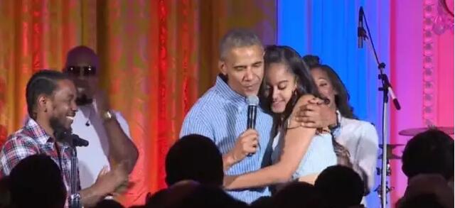 白宮國慶聚會一向在南草坪舉行,本來包括老兵及其家屬們在內(nèi)的數(shù)千人將會參見在白宮南草坪的聚會,但是由于當(dāng)天一直在下雨,白宮辦公室在聚會前一小時不得不臨時取消了室外的幾千人聚會,改成在白宮里面只有總統(tǒng)特邀貴賓兩百人可以出席的小型私人聚會,慶祝美國國慶的同時也為剛好同日生日的奧巴馬總統(tǒng)大女兒瑪利亞慶生,兩百貴賓與奧巴馬總統(tǒng)全家一起歡慶國慶及瑪利亞18歲生日,共同欣賞了美國著名流行歌星Kendrick Lamar 和 Janelle Monáe的精彩表演。隨后奧巴馬總統(tǒng)發(fā)表了國慶講話,并為瑪利亞唱起祝你生日快樂歌,將現(xiàn)場氣氛推向高潮。