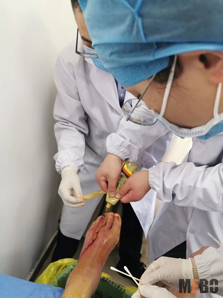 11月6日,鶴煤總醫(yī)院內(nèi)分泌科楊紅玉副主任醫(yī)師受南樂縣中興醫(yī)院邀請(qǐng)會(huì)診糖足患者,楊大夫查閱病例后結(jié)合患者全身檢查結(jié)果現(xiàn)場(chǎng)交流、探查竇道、切開創(chuàng)面、減脹引流、修剪腔內(nèi)壞死組織,最后運(yùn)用再生醫(yī)療技術(shù)油紗填塞無菌包扎。通過再生醫(yī)療技術(shù)的治療,希望更多的患者減少糖尿病并發(fā)癥的困惑。