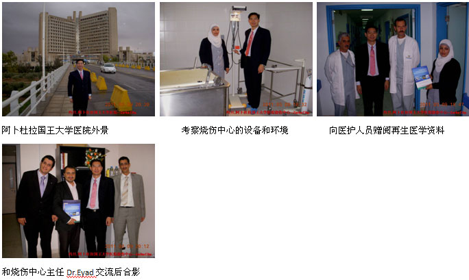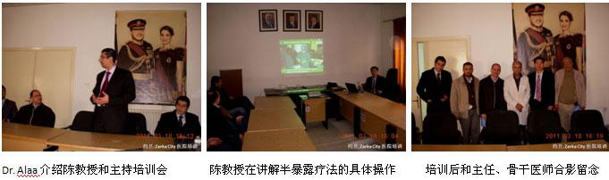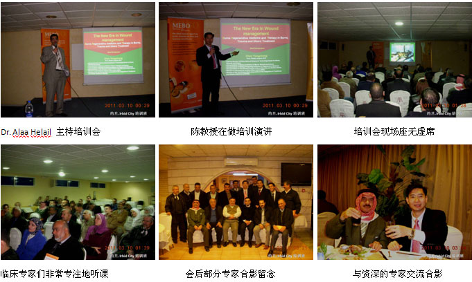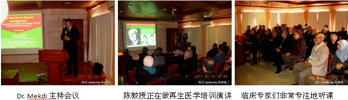 3、 2011年3月10日上午,陳教授一行應(yīng)邀來到了的Zarka市Zarka Hospital的外科病房進(jìn)行學(xué)術(shù)交流及再生醫(yī)學(xué)技術(shù)培訓(xùn)。Zarka Hospital是當(dāng)?shù)刈畲蟮木C合醫(yī)院,該院在臨床上使用MEBO治療小面積燒傷和慢性潰瘍創(chuàng)面已經(jīng)有8年多的經(jīng)驗(yàn),但是在大面積燒傷的救治上還沒有突破。主任和醫(yī)護(hù)人員對(duì)陳教授的到來表示熱情歡迎,詢問了大家在臨床中使用MEBO的情況、存在的問題和進(jìn)行簡(jiǎn)單的討論后,為了使大家能夠更全面、更系統(tǒng)地掌握燒傷再生醫(yī)學(xué)技術(shù),陳教授隨后用1小時(shí)的時(shí)間給該院的10名外科醫(yī)師進(jìn)行了燒傷再生醫(yī)學(xué)技術(shù)臨床規(guī)范應(yīng)用的培訓(xùn),培訓(xùn)使大家更多地了解了再生醫(yī)學(xué)技術(shù)在大面積燒傷和各種嚴(yán)重創(chuàng)瘍創(chuàng)面的治療效果和具體的創(chuàng)面治療方法,增強(qiáng)了大家以后使用再生醫(yī)學(xué)技術(shù)治療中等面積和大面積燒傷的信心。