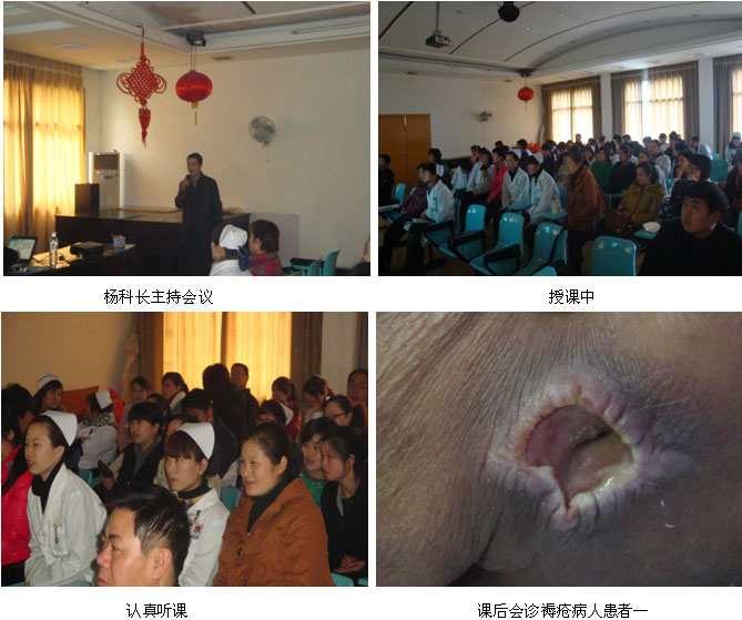 本次活動(dòng)由邵陽市康復(fù)醫(yī)院醫(yī)務(wù)科楊科長(zhǎng)組織并主持會(huì)議,參加本次培訓(xùn)醫(yī)護(hù)人員為該醫(yī)院相關(guān)科室醫(yī)務(wù)人員以及門診,急診科部分醫(yī)生。本次學(xué)術(shù)講座金主任以詳實(shí)的資料分三部分做詳細(xì)的闡述:一、介紹國(guó)內(nèi)臨床中常見各類復(fù)雜、難愈創(chuàng)面治療的最新學(xué)術(shù)動(dòng)態(tài)和新進(jìn)展。二、展示生命再生科學(xué)皮膚原位再生復(fù)原技術(shù)在創(chuàng)面處理中的基礎(chǔ)研究成果。三、演示臨床實(shí)踐和技術(shù)操作規(guī)范。 對(duì)臨床一線如普外、骨科、內(nèi)分泌科,血管科等專業(yè)的醫(yī)護(hù)人員進(jìn)行現(xiàn)場(chǎng)近距離交流,和問題解答。之后在醫(yī)務(wù)科楊科長(zhǎng)的陪同下,金主任分別為該院康復(fù)一病區(qū),二病區(qū)住院病人會(huì)診。并為患者進(jìn)行皮膚原位再生復(fù)原技術(shù)規(guī)范換藥示范,講解再生技術(shù)應(yīng)用特點(diǎn)和規(guī)范操作的重要意義,在場(chǎng)醫(yī)生護(hù)理人員認(rèn)真學(xué)習(xí)了全部換藥過程,第二天上午八點(diǎn)金主任又親到病房指導(dǎo)醫(yī)師換藥,以規(guī)范創(chuàng)面換藥技術(shù)。
