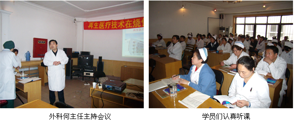 學(xué)術(shù)交流會議由該院醫(yī)務(wù)科組織,外科何主任主持。參加會議的科室有骨科、普外科、燒傷科、婦產(chǎn)科、內(nèi)科等相關(guān)科室的主任和醫(yī)務(wù)人員,共計50余人。樊教授在授課時,通過多媒體介紹了徐榮祥教授發(fā)明的皮膚再生復(fù)原醫(yī)療技術(shù)在世界生命科學(xué)前沿的地位及目前的科學(xué)成果,并通過大量臨床典型的病例圖片,講解了不同病例的不同治療方法及換藥處理,本次授課內(nèi)容涵蓋了多個科室再生醫(yī)療技術(shù)的應(yīng)用,其中包括燒傷燙傷的治療,創(chuàng)傷創(chuàng)面的治療,褥瘡及慢性潰瘍的治療,糖尿病足的治療等。與會的醫(yī)生聽后感覺耳目一新,受益非淺。他們對再生醫(yī)療技術(shù)治愈的棘手病例更是稱贊不已,大家互相交流臨床經(jīng)驗,現(xiàn)場學(xué)習(xí)氣氛非常濃郁。此次培訓(xùn)班圓滿結(jié)束。