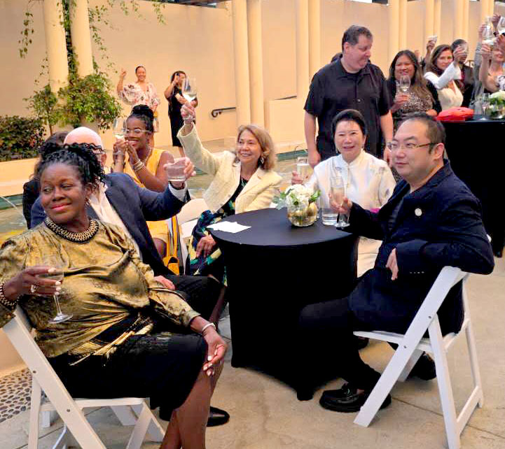 當(dāng)?shù)貢r間2025年8月17日,美寶集團董事局主席徐鵬、副主席李俐應(yīng)邀出席加州州立大學(xué)洛杉磯分校(Cal State LA)新任校長貝雷妮絲亞·約翰遜·伊恩斯博士(Berenicea Johnson Eanes)就職典禮招待晚宴。典禮上,董事局與加州州立大學(xué)總校長米爾德里德·加西亞(Mildred García)、校董會主席杰克·B·克拉克(Jack B. Clarke Jr.)同席交流,圍繞深化科研合作與人才聯(lián)合培養(yǎng)、拓展文化交流項目等議題展開探討,為雙方未來深化多領(lǐng)域合作凝聚共識、奠定基礎(chǔ)。