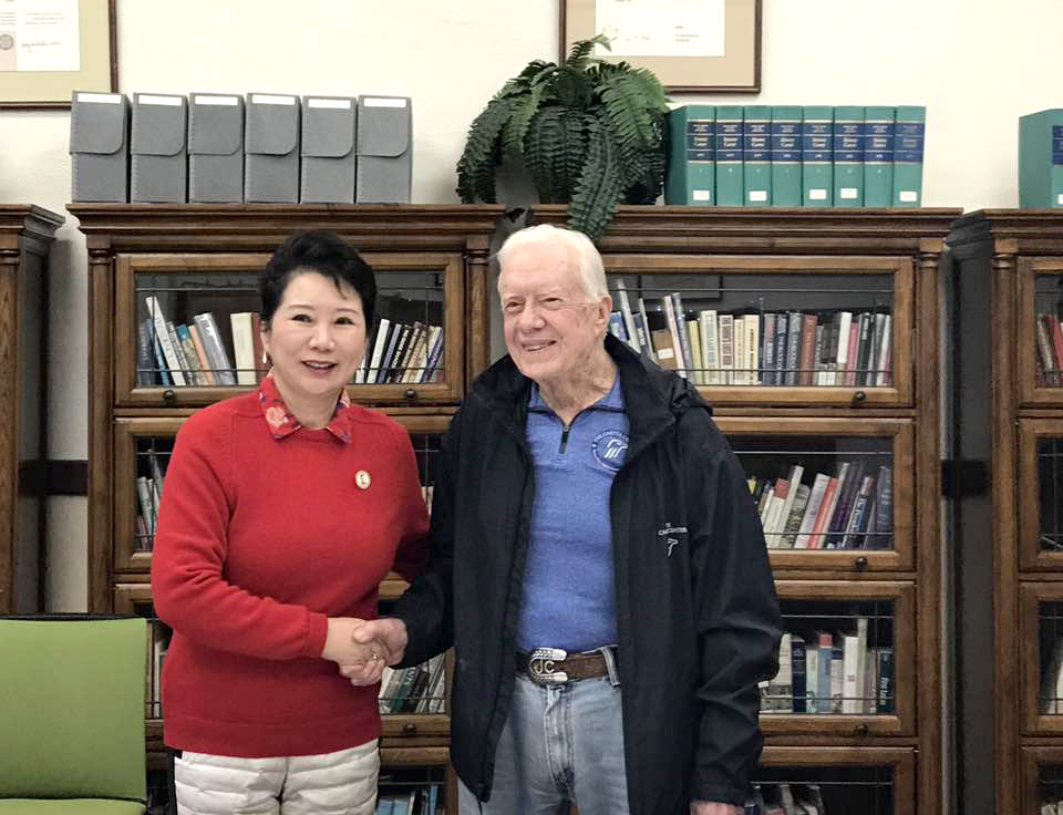 2017年12月8日,美寶國際集團(tuán)副董事長、徐榮祥基金會主席李俐與中美友好交流代表團(tuán)一起訪問了美國前總統(tǒng)卡特的家鄉(xiāng)普萊恩斯鎮(zhèn)??ㄌ乜偨y(tǒng)特意在博物館親切接見了李俐醫(yī)生,并在徐榮祥教授編著的《人體再生復(fù)原科學(xué)》上簽名,希望她能繼承徐教授的精神,繼續(xù)促進(jìn)中美的教育與公益事業(yè)。