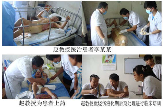 北京燒傷創(chuàng)瘍研究所趙瑞慶教授第一時(shí)間趕到了該醫(yī)院,在院領(lǐng)導(dǎo)的協(xié)調(diào)下,積極參與了搶救工作。截止到8月20日,使用再生復(fù)原技術(shù)治療兩例大面積燒傷病人,安全度過了休克期、感染期,平穩(wěn)過渡到創(chuàng)面修復(fù)階段。趙瑞慶教授利用星期天早會(huì)間隙時(shí)間,就如何正確認(rèn)識(shí)創(chuàng)面液化物,用創(chuàng)瘍貼保護(hù)創(chuàng)面軟薄膜、如何減少使用抗生素用量進(jìn)行了專題培訓(xùn)。趙教授在菏澤創(chuàng)傷醫(yī)院搶救病人期間和該院鄭連榮、楊鳳民院長(zhǎng)就北京燒傷創(chuàng)瘍研究所與菏澤創(chuàng)傷醫(yī)院持久長(zhǎng)期技術(shù)合作達(dá)成了一致意見。