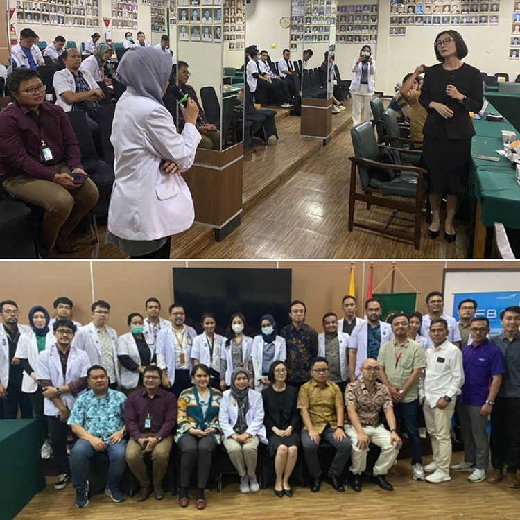 7月24日至25日,美寶國(guó)際的學(xué)術(shù)足跡延伸至西爪哇省首府萬(wàn)隆市,在當(dāng)?shù)刈畲蟮慕虒W(xué)醫(yī)院Hasan Sadikin與60余名醫(yī)療專業(yè)人士進(jìn)行了學(xué)術(shù)交流與分享。徐巍巍主任圍繞慢性創(chuàng)面護(hù)理與治療,深入剖析了再生醫(yī)療技術(shù)的作用機(jī)制、適應(yīng)癥范圍及學(xué)術(shù)研究成果,為參會(huì)者提供了生動(dòng)的講解及答疑。交流之余,醫(yī)院科室負(fù)責(zé)人Dr Almahita Cintami Putri的引領(lǐng)參觀,更是讓美寶國(guó)際團(tuán)隊(duì)對(duì)印尼醫(yī)療體系有了更為直觀和深入的了解。