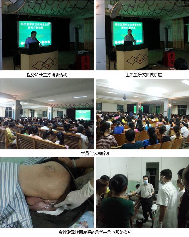 當(dāng)日晚上19時30分,玉林市第三人民醫(yī)院綜合樓2樓會議室座無虛席,全院各科室除值班醫(yī)護(hù)人員外,共有200多人到會聆聽王主任的專題講座,該醫(yī)院主管副院長主持了學(xué)術(shù)講座,醫(yī)務(wù)科植科長在王主任講座結(jié)束后做了總結(jié)發(fā)言,會議中,王主任首先向與會專家及醫(yī)護(hù)人員介紹了我國著名生命科學(xué)家、醫(yī)學(xué)家、人體再生復(fù)原科學(xué)的創(chuàng)立者、再生醫(yī)療技術(shù)的發(fā)明人徐榮祥教授近期在人體再生復(fù)原科學(xué)及再生醫(yī)學(xué)研究最新進(jìn)展,而后結(jié)合了大量的臨床病例圖片,重點(diǎn)講述了再生復(fù)原療法對骨外露、鋼板外漏、肌腱外露、皮膚軟組織撕脫傷、骨科創(chuàng)瘍、糖尿病足、動脈閉塞癥、褥瘡等深度創(chuàng)面及難愈性創(chuàng)面治療新進(jìn)展及規(guī)范化處理方法與技巧、注意事項等,學(xué)術(shù)講座一直持續(xù)到晚上21時30分才結(jié)束。
