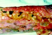 6. 創(chuàng)面采MEBO制成油紗覆蓋。7天后,從鉆孔中生長出肉芽組織。