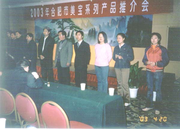 為提高美寶銷售店員的營(yíng)銷素質(zhì),使他們?cè)谝痪更好地為廣大消費(fèi)者服務(wù),于2003年4月19日下午2:00~4:00,在諾富特合肥齊云山莊三層宴會(huì)廳舉辦了 “2003年合肥市美寶系列產(chǎn)品推介會(huì)”,本次活動(dòng)是由美寶國際集團(tuán)主辦,來自合肥市及省會(huì)以外地市的醫(yī)療網(wǎng)醫(yī)院的醫(yī)護(hù)人員、安徽省綠十字連鎖、安徽省長(zhǎng)江大藥房連鎖、合肥大藥房連鎖、上海醫(yī)藥股份華氏藥店連鎖等連鎖藥店經(jīng)理及店員、安徽醫(yī)科大學(xué)附屬醫(yī)院藥劑科、安徽省醫(yī)藥(集團(tuán))股份有限公司、南京醫(yī)藥股份合肥天星有限公司、安徽省惠康醫(yī)藥有限公司、宿州市華康醫(yī)藥有限公司、安徽皖健科技開發(fā)中心、合肥市迪邁藥械公司等醫(yī)藥公司領(lǐng)導(dǎo)及相關(guān)人員100余人參加此次活動(dòng)。