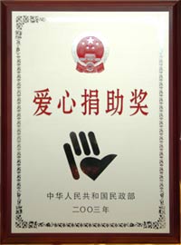 2003年12月15日,民政部在人民大會(huì)堂舉行隆重的全國(guó)社會(huì)捐助表彰大會(huì),授予208個(gè)先進(jìn)集體和個(gè)人“愛(ài)心捐助獎(jiǎng)”,中共中央政治局委員、國(guó)務(wù)院副總理回良玉,全國(guó)政協(xié)副主席郝建秀出席會(huì)議并向獲獎(jiǎng)?wù)哳C發(fā)獎(jiǎng)牌和證書(shū)。