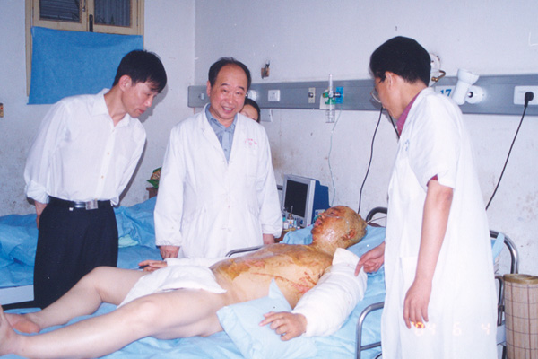 不久前湖南省寧鄉(xiāng)8名工商人員在暴力抗法事件中造成硫酸燒傷,其中4名輕傷員在寧鄉(xiāng)縣人民醫(yī)院治療,受傷較重的4名同志轉(zhuǎn)湘雅三醫(yī)院燒傷科救治,中國(guó)中西醫(yī)結(jié)合學(xué)會(huì)燒傷專業(yè)委員會(huì)主任委員徐榮祥教授得知這一消息后立即致電湘雅三院黃院長(zhǎng)和醫(yī)院燒傷科主任羅成群教授并全體醫(yī)護(hù)人員,表示了支持和慰問(wèn)。 慰問(wèn)電中語(yǔ)重心長(zhǎng)的寫到:"得知你們正在全力以赴搶救成批燒傷的工商執(zhí)法人員,特致電表示慰問(wèn)!學(xué)會(huì)堅(jiān)信,你們是世界上燒傷臨床技術(shù)最好的醫(yī)院,更相信你們?cè)诳倳?huì)副主任委員、你們的科主任羅成群教授的帶領(lǐng)下,能夠發(fā)揮最高的醫(yī)療技術(shù)水平,最大限度的減少傷員的殘疾和痛苦。學(xué)會(huì)是你們的技術(shù)后盾,全國(guó)燒傷醫(yī)療網(wǎng)的專家們祝愿負(fù)傷的工商人員在你們的治療下早日康復(fù),重返工作崗位。" 2004年6月4日在長(zhǎng)沙參加第51屆全國(guó)藥品交易會(huì)的美寶國(guó)際集團(tuán)陳寶琪董事長(zhǎng)和專家委員會(huì)肖摩主任到中南大學(xué)湘雅三醫(yī)院燒傷科,在科主任羅成群教授的陪同下看望了燒傷的工商人員賀志華、彭險(xiǎn)峰、彭強(qiáng)、張勝初等四名工商執(zhí)法人員,由于醫(yī)護(hù)人員的精心治療,他們的傷情得到控制。應(yīng)用皮膚再生醫(yī)療技術(shù)治療的傷員懷著感激的心情,對(duì)濕潤(rùn)燒傷膏減輕痛苦和顯著的療效稱贊不已,部分經(jīng)過(guò)切痂植皮的深度燒傷還在敷料的包扎下等待創(chuàng)面的愈合,全部傷員病情穩(wěn)定已經(jīng)進(jìn)入恢復(fù)期。 陳董事長(zhǎng)代表徐榮祥教授給湘雅三醫(yī)院燒傷科全體工作人員送去鮮花和水果,對(duì)他們卓有成效的工作表示了感謝和慰問(wèn)?浦魅瘟_成群教授和護(hù)士長(zhǎng)代表全體醫(yī)護(hù)人員感謝徐榮祥教授對(duì)燒傷科的鼓勵(lì)、關(guān)心和支持。 6月6日下午邀請(qǐng)湖南中西醫(yī)結(jié)合學(xué)會(huì)燒傷專業(yè)委員會(huì)在長(zhǎng)沙的委員召開座談會(huì),美寶國(guó)際集團(tuán)領(lǐng)導(dǎo)陳寶琪、楊智斌、國(guó)內(nèi)部主任常玉秋和執(zhí)行官?gòu)埨、專家委員會(huì)主任肖摩、湖南分公司總經(jīng)理汪波,湖南中西醫(yī)結(jié)合學(xué)會(huì)燒傷專業(yè)委員會(huì)顧問(wèn)馬恩慶教授、史庭堅(jiān)、主任委員羅成群教授以及副主任委員賀全勇、秘書周建大、侯效東等參加。會(huì)議中向大家介紹了集團(tuán)在國(guó)際國(guó)內(nèi)的發(fā)展前景和不久前召開第八屆全國(guó)燒傷創(chuàng)瘍學(xué)術(shù)會(huì)議的情況。湖南中西醫(yī)結(jié)合學(xué)會(huì)燒傷專業(yè)委員介紹了近期在株州、郴州組建成立燒傷創(chuàng)瘍科技醫(yī)療分中心的計(jì)劃,討論了當(dāng)前燒傷再生醫(yī)學(xué)及療法最新科研成果在臨床應(yīng)用的現(xiàn)狀和存在的問(wèn)題、應(yīng)對(duì)措施等。