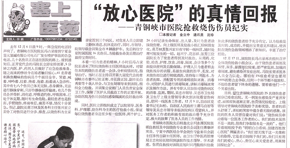 放心醫(yī)院的真情回報(bào)----青銅峽市醫(yī)院搶救燒傷傷員紀(jì)實(shí)