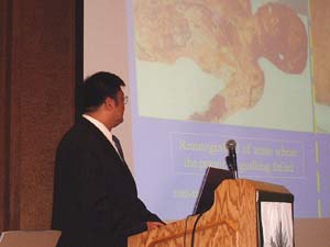 此次会议的学术专题内容分两部分,W一部分是干l胞(yu)、基因技术及l胞(yu)疗法Q第二部分是生殖克隆和器官再生医学;W一部分被安排在10?日进行,W二部分?日进行?0位主题发a人分别向大会报告了各自的最新研I成果。以GERON公司副主席David EarpJ.D.Z表,ȝ和介l了他们自THOMASION开始进行的胚胎q细?yu)研I及其进展情况,但目前的研究仍停留在q细?yu)的培养阶段Q在此阶D尚未达到在体外培养成有功能的组l器官的阶段。在基因技术的探讨领域QLayton Bioscience的Annemarie Moseley介绍了{基因生殖培养的研I成果,但也未获得Z应用的突破。在l胞(yu)疗法领域Q多家大学均在不同角度报告了在神l细?yu)和经l胞(yu)疗法{方面的研究Q但仍未获得临床H破Q如哈佛大学的Evan Y. Snyder教授介绍的神l干l胞(yu)的研I及“可能”的ȝ前景Q当有代表问道其可能的“Time table”时Q他谈到最早也是在2-3q之后;The Salk Institute的Dieter 也讲C他们在成体神l干l胞(yu)的研IӞ与MEBO的前期思\很接q,但他们也很难H破体外培养l胞(yu)成ؓl织q一养I在生D克隆研I上Q在国际上因率先研究人类胚胎克隆而知名的ACT公司dMichealQ详l介l了动物和hc胚胎克隆的技术和Ҏ(gu)。还有几位著名的U学家Naohiro Terada、Tim Brazelton、Jan W、M. Wisser都大胆地在生命科学前沿研I的多个概念和未来的d及科学前景方面提Z设想和看法,? Stanford University School of Medicine 的Tim Brazelton通过他自q实验数据及近q来世界范围内的研究情况Q大胆地提出现有的干l胞(yu)概念已无法跟上进展,q提Z其修改后的新概念范畴?/p>