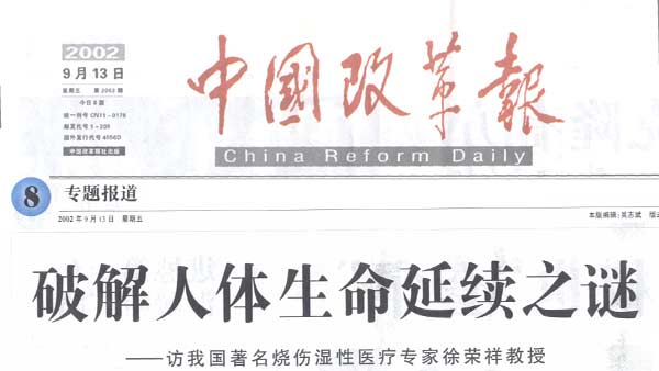 編者按 2002年8月16日,我國著名的燒傷濕性醫(yī)療專家徐榮祥教授,完成了在境外的皮膚器官原位復制和體外部分組織器官復制的重復性研究后宣布,要實現(xiàn)人體組織器官的原位復制;把他的美寶國際集團總部搬回國內(nèi),把生命科學研發(fā)基地建在國內(nèi),把集團的經(jīng)營主體建在國內(nèi)。徐榮祥的這一宣布,世界各國媒體均進行了報道。美國《科學》雜志從美國特派記者來北京對徐教授進行專訪。