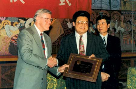 美國《科學》雜志特派記者:Charles C.Mann 助理:Joshua Nicholas 徐榮祥教授,徐教授的三位科技助理:紀曉峰(醫(yī)學博士)、孫霞(醫(yī)學博士)、張寶濤(醫(yī)學博士)。 Joshua:非常感謝,徐教授能在百忙中接受我們的采訪,我是提前來中國,MANN是昨天晚上趕來中國,我們事先查看了幾乎所有的新聞和你的網(wǎng)站介紹,認為這項成果是一國際重大的事情,他將給人類帶來健康和幸福。 Mann:我在報紙上看到了您的新發(fā)現(xiàn),很感興趣,就來采訪一下,因為報紙上的東西不是很詳細、準確。 Mann:真的嗎? Mann:1979年開始從事什么樣的研究? 徐榮祥:1979年我開始是研究再生的環(huán)境,1979年我在醫(yī)學院,看到燒傷病人非常痛苦,只有移植皮膚,沒有別的辦法。老師說沒有別的好辦法,我不服。當時我就想能不能再生皮膚,從此,我就開始從田地里的南瓜開始實驗。 Mann:南瓜嗎?我非常驚訝是從南瓜實驗開始的。 徐榮祥:南瓜實驗是這樣的:我削了三塊皮,一塊用油,一塊用水(濕沙布),一塊干燥。油覆蓋的那塊長出了新皮;用水覆蓋的爛了一個洞;干燥(太陽照射的)的就長出大塊疤。從這里我得到了一個啟示:生命的環(huán)境也決定著生命的結(jié)局。從這個實驗結(jié)果我就想,人的皮膚也將會是這樣,所以就進行了動物實驗。 Mann:這是在什么時候? 徐榮祥:這是在1979-1981年。 Mann:這就是最早的研究,是嗎? 徐榮祥:對,1981年動物實驗完了之后,我就寫了25萬字的論文,畢業(yè)以后,我們繼續(xù)在臨床上治療病人,結(jié)果我發(fā)現(xiàn)治療結(jié)果和“南瓜實驗”是一樣的,只要保持創(chuàng)面生理性濕潤,再進一步研究治療方法,就可以使其愈合,凡是沒有保持生理濕潤環(huán)境,而是干燥的,就會留下疤痕。一直到1988年,臨床研究沒有停止,不斷地調(diào)整治療方法,使其達到最好的效果。1988年之后就向國家申報新藥,被衛(wèi)生部批為新藥。 Mann:衛(wèi)生部是不是類似于美國的FDA?