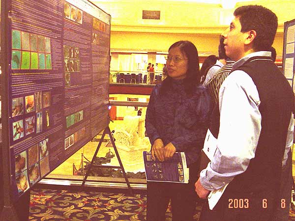 好幾個(gè)美國(guó)著名大學(xué)的專(zhuān)家教授來(lái)到我的展板前聆聽(tīng)、研究、討論我們的研究方向、實(shí)驗(yàn)技能和結(jié)果,在我們的所有以事實(shí)為基礎(chǔ),以實(shí)踐為主繩的報(bào)告面前,他們都很受啟發(fā),甚至覺(jué)得“不可思議”: