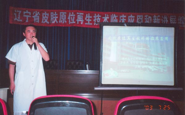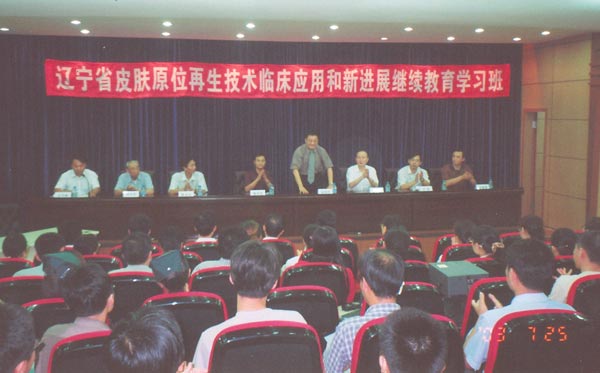 2003年7月25日上午8:30,經(jīng)過積極籌備、認真組織和精心安排,“遼寧省皮膚原位再生技術(shù)臨床應(yīng)用和新進展繼續(xù)教育學(xué)習班”在錦州醫(yī)學(xué)院附屬第一醫(yī)院學(xué)術(shù)報告廳召開。參加本次培訓(xùn)班的學(xué)員有來自黑龍江省、吉林省和遼寧省各醫(yī)院的領(lǐng)導(dǎo)和醫(yī)護人員一百多人,徐榮祥教授的到來給此次活動帶來了非常熱烈的氣氛并充滿了活力。