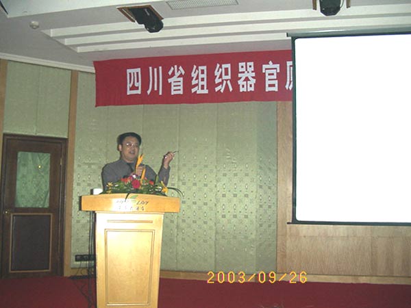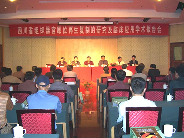 2003年9月26至27日,由四川省醫(yī)學(xué)會(huì)和四川省中西醫(yī)結(jié)合學(xué)會(huì)聯(lián)合舉辦的四川省“組織器官原位再生復(fù)制的研究及臨床應(yīng)用學(xué)術(shù)報(bào)告會(huì)”分別在成都市蜀罱大酒店5樓國(guó)際會(huì)議中心和京川賓館多功能廳舉行。再生醫(yī)學(xué)的創(chuàng)立者、我國(guó)著名生命科學(xué)家徐榮祥教授應(yīng)邀到會(huì)作專題學(xué)術(shù)報(bào)告,來(lái)自四川省瀘州醫(yī)學(xué)院、川北醫(yī)學(xué)院等醫(yī)學(xué)院校和成都、綿陽(yáng)、德陽(yáng)、廣元、自貢、宜賓、內(nèi)江、樂(lè)山、南充、遂寧、雅安、瀘州、廣安、巴中、涼山州、阿壩洲等16個(gè)地、州、市的19家地市級(jí)核心醫(yī)院及59家縣級(jí)和廠礦醫(yī)院共78家醫(yī)療單位的燒傷科主任、外科主任、業(yè)務(wù)骨干146人參加了會(huì)議,其中中華醫(yī)學(xué)會(huì)四川省燒傷外科學(xué)會(huì)的15個(gè)省級(jí)委員也參加了這次會(huì)議。
