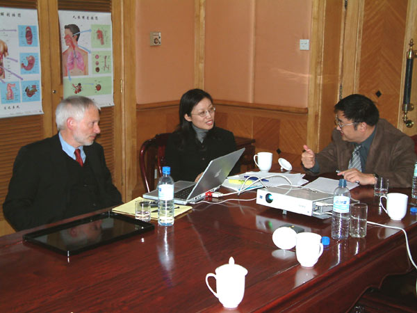 早在1983-1989年,Burghardt Wittig就獲得了德國(guó)最高獎(jiǎng)學(xué)金--德國(guó)研究院協(xié)會(huì)頒發(fā)的"Heisenberg教授"獎(jiǎng)學(xué)金。他還被以色列WEIZMANN、日本ERATO及美國(guó)MIT等多所大學(xué)或研究所聘為客座教授。1989年,Wittig教授獲得了"柏林自由大學(xué)先靈教授"位置,1991年,晉升為C4教授(德國(guó)最高教授級(jí)別)。他的研究項(xiàng)目得到了德國(guó)研究協(xié)會(huì)"特別研究領(lǐng)域"及"重點(diǎn)項(xiàng)目"的最高資助,此外,還得到了聯(lián)邦科學(xué)技術(shù)部、大眾汽車(chē)公司基金會(huì)、德國(guó)化學(xué)工業(yè)協(xié)會(huì)等機(jī)構(gòu)的贊助。 Wittig教授長(zhǎng)期成功的工作與基礎(chǔ)研究共分三個(gè)不同部分:在染色體層上對(duì)基因表達(dá)進(jìn)行控制、生物信息學(xué)及信號(hào)傳導(dǎo)。從1979年至今,他先后在Science, Cell, Nature, PNAS, EMBO等著名雜志上發(fā)表論文30多篇(其他雜志上近百篇),并兩次獲諾貝爾獎(jiǎng)提名,是現(xiàn)代分子生物學(xué)的杰出代表。 這是Wittig教授第一次訪(fǎng)華,經(jīng)朋友介紹,他聽(tīng)說(shuō)了我國(guó)著名生命再生醫(yī)學(xué)專(zhuān)家徐榮祥教授和他所創(chuàng)立的"燒傷皮膚再生醫(yī)療技術(shù)"。以他敏銳的科學(xué)靈感,他一下子就對(duì)徐榮祥和美寶產(chǎn)生了濃厚的興趣,立即瀏覽"美寶生命再生醫(yī)學(xué)網(wǎng)"的英文網(wǎng)站。網(wǎng)站中的大量相關(guān)再生醫(yī)學(xué)前沿的科學(xué)研究和皮膚再生療法的大量臨床實(shí)效進(jìn)一步激發(fā)了他拜訪(fǎng)徐教授的強(qiáng)烈愿望。由此,他由朋友引薦,于2003年11月3日晚在徐榮祥教授的辦公室(北京貴賓樓飯店)會(huì)見(jiàn)了徐榮祥教授。 首先,徐教授介紹了他及他的團(tuán)隊(duì)在再生醫(yī)學(xué)領(lǐng)域內(nèi)的基礎(chǔ)研究和臨床治療上的巨大突破和貢獻(xiàn)。 為了使客人能夠理解再生醫(yī)學(xué)理論的內(nèi)涵,徐教授首先為他解釋了組織器官、原位和再生物質(zhì)等幾個(gè)關(guān)鍵的概念問(wèn)題。 當(dāng)徐教授講到在研究中將人體分成206個(gè)具有生命功能的組織單位,被稱(chēng)為組織器官既組織器官時(shí),德國(guó)教授對(duì)此表現(xiàn)出很大的熱情,因?yàn)樵谒麄兊难芯恐幸彩前垂δ軇澐秩梭w器官,和徐教授的理論不謀而合,甚至在數(shù)量上都非常接近。 至于談到原位和再生物質(zhì)兩個(gè)概念時(shí)兩位教授更是有相見(jiàn)恨晚的感覺(jué),因?yàn)閺臇|西方文化來(lái)講,兩個(gè)人是截然不同的,一個(gè)是注重探究事物的原因,再去尋求事物的結(jié)果;而另一個(gè)是先在實(shí)踐中獲取事物的結(jié)果,從結(jié)果去研究事物的原因,從事物的原因再回來(lái)指導(dǎo)獲取新的結(jié)果。但是在科學(xué)的道路上卻是那樣的不謀而合。他們都認(rèn)為,不論是器官再生還是分子生物學(xué)的細(xì)胞調(diào)控,其最佳途徑是在原位進(jìn)行。對(duì)于生命再生物質(zhì),德國(guó)客人完全贊同生命再生物質(zhì)可以是一種由多種成分組成的能激活和維持組織細(xì)胞增殖和分化并能形成新的組織或組織器官的物質(zhì)或物質(zhì)組合物的感念。它的特點(diǎn)在于只是在生命的再生過(guò)程中產(chǎn)生作用。 接下來(lái)徐榮祥教授為德國(guó)客人全面介紹了再生醫(yī)學(xué)理論的發(fā)展過(guò)程和最新進(jìn)展情況。 眾所周知,徐榮祥教授的再生醫(yī)學(xué)理論源于在臨床實(shí)踐中再生人體最大的器官--皮膚,并得益于從中觀察到的人體器官的再生現(xiàn)象,最終揭示了人體器官再生的普遍規(guī)律,即:人體器官普遍具有再生能力的潛能再生細(xì)胞,這種細(xì)胞(是一種特殊的成體組織細(xì)胞)在再生物質(zhì)的調(diào)控下,可以轉(zhuǎn)化為干細(xì)胞,由干細(xì)胞分裂分化成各種組織細(xì)胞,最終組合連接成器官。這種再生過(guò)程,從最早建立的燒傷皮膚原位再生模型開(kāi)始,目前已經(jīng)完成了胃腸粘膜、骨髓、胰腺、腎功能單位腎小管、神經(jīng)、心肌、等多個(gè)組織器官的原位或體外復(fù)制。多器官多層次地驗(yàn)證和確定了能激活和維持具有再生潛能的組織細(xì)胞增殖分化的生命活性物質(zhì)和再生環(huán)境;完成了用生命再生物質(zhì)激活和促使組織潛能再生細(xì)胞增殖、保障維持再生潛能細(xì)胞的增殖分化和保障組織器官的形成的全過(guò)程。 當(dāng)這些實(shí)實(shí)在在的成果被展示在德國(guó)客人的面前時(shí),勝過(guò)了一切言語(yǔ),兩位教授會(huì)心地笑了,Wittig教授盛贊了徐教授的科研成果和在燒傷臨床上的偉大成績(jī),經(jīng)過(guò)短暫的交流和討論,他誠(chéng)懇地說(shuō),"我相信您一定會(huì)以您的這些成就和對(duì)人類(lèi)的貢獻(xiàn)獲得諾貝爾獎(jiǎng)!" 短暫的自助餐后,我們又聽(tīng)取了Wittig教授的精彩報(bào)告。Wittig教授通過(guò)對(duì)它所研制的藥物IMOBarrier II/III的講述,詳細(xì)介紹了這種"自然防御疫苗"的作用機(jī)理和應(yīng)用前景。 IMOBarrier是一種免疫調(diào)節(jié)劑,它使先天免疫系統(tǒng)通過(guò)細(xì)胞因子的擴(kuò)散而被超強(qiáng)激活。細(xì)胞因子可將身體內(nèi)受到威脅的細(xì)胞從防御性的分子武器中產(chǎn)生
