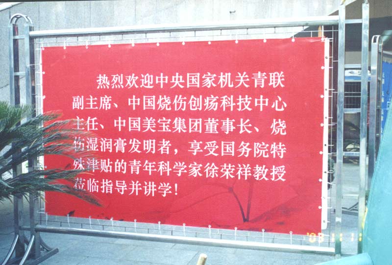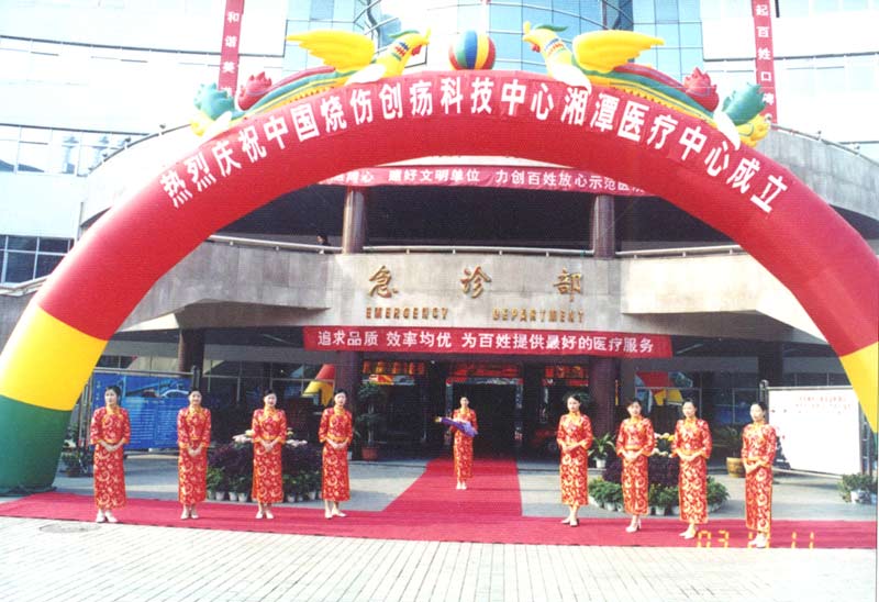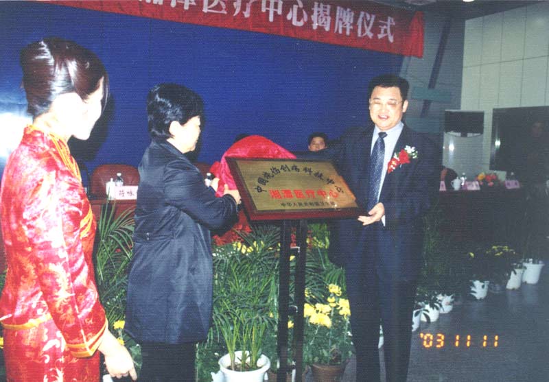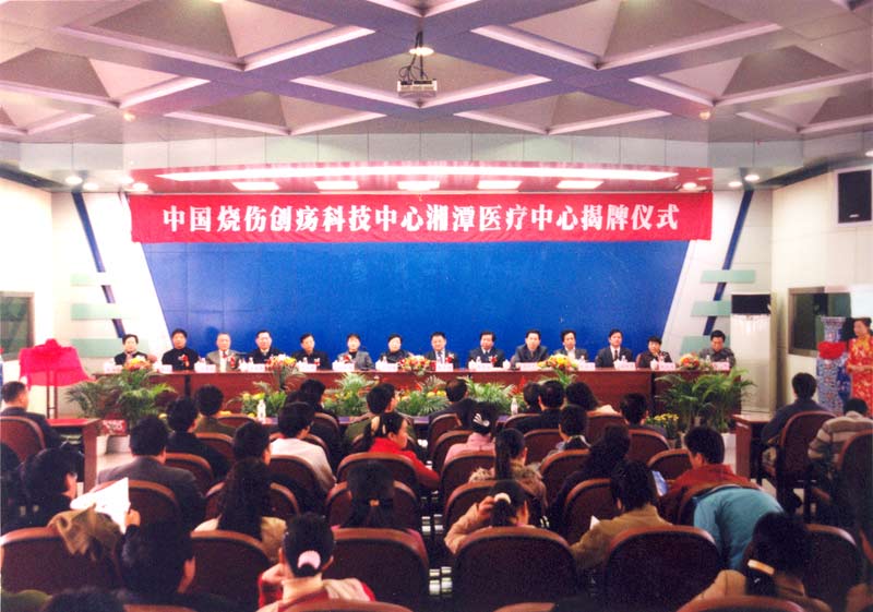 金秋之際,陽(yáng)光燦爛,碩果累累。2003年是11月11日是一代偉人毛澤東主席的故鄉(xiāng)——湘潭市中心醫(yī)院的大喜之日。省市領(lǐng)導(dǎo)、各位專家教授及各界人士400余人歡聚一堂,共同為新成立的中國(guó)燒傷創(chuàng)瘍科技中心湘潭醫(yī)療分中心正式掛牌慶典,并熱烈歡迎著名的生命科學(xué)家徐榮詳教授來(lái)湘講學(xué)。