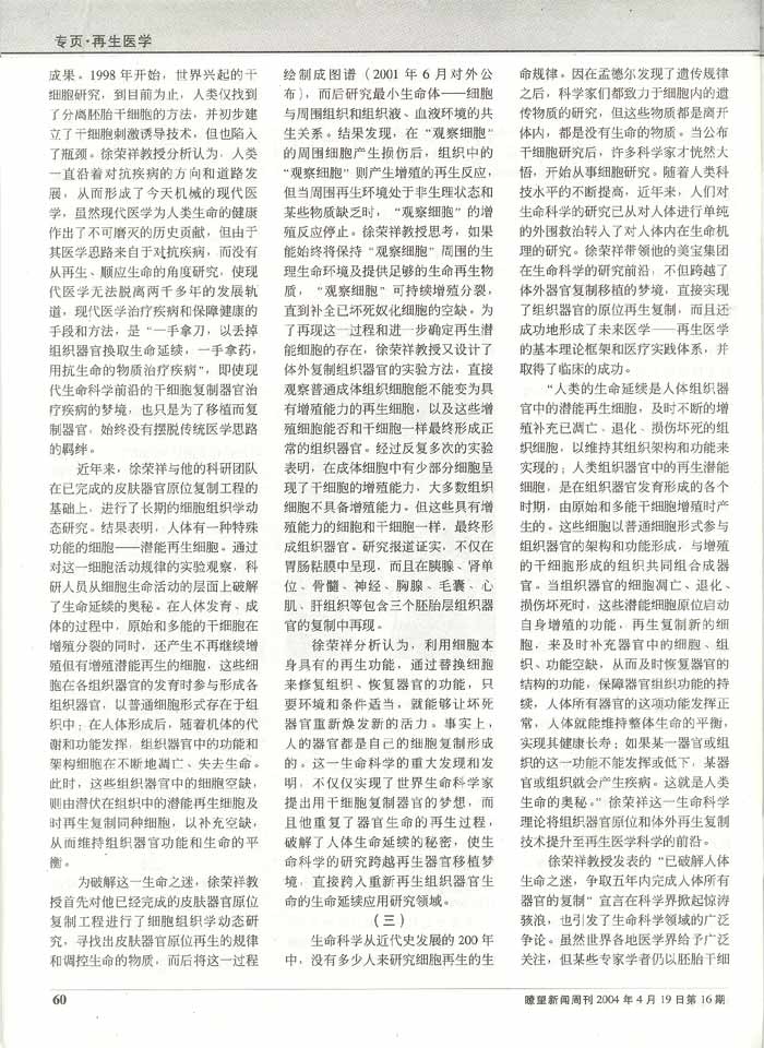 徐榮祥:《再生醫(yī)學(xué)》叩啟生命之門