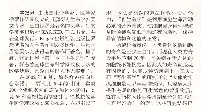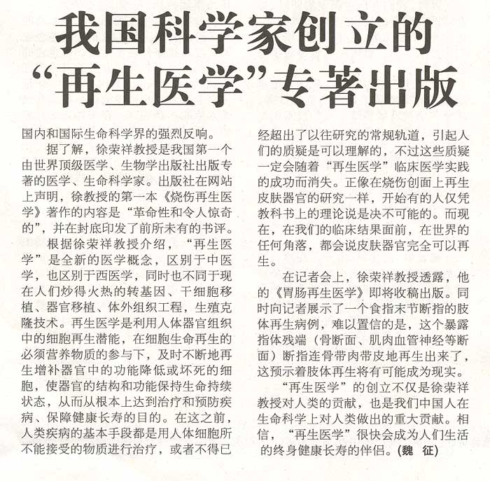 我國(guó)科學(xué)家創(chuàng)立的“再生醫(yī)學(xué)”專著出版