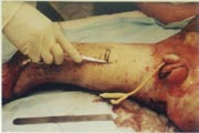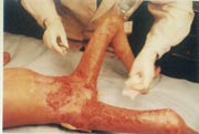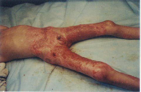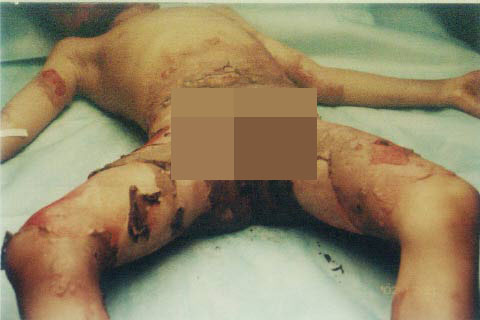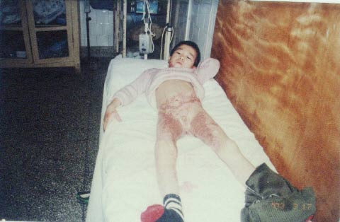 2002年12月21日,中國燒傷創(chuàng)瘍柳鋼科技醫(yī)療中心在柳州市人民廣場舉行燒傷濕性醫(yī)療技術(shù)宣傳義診活動,通過這次活動使患兒的家人了解到先進(jìn)的燒傷濕性醫(yī)療技術(shù),并果斷地于當(dāng)天將患兒從基層縣醫(yī)院轉(zhuǎn)到了柳鋼燒傷治療中心,轉(zhuǎn)入診斷:大面積特重度燒傷(總面積40%,其中III度16%,深I(lǐng)I度10%,淺II度14%)。轉(zhuǎn)入后,燒傷中心的醫(yī)師護(hù)士們采用規(guī)范的燒傷濕性醫(yī)療技術(shù),對患兒進(jìn)行了細(xì)心治療和護(hù)理,經(jīng)過48天的治療修復(fù)了燒傷創(chuàng)面,配合功能鍛煉,住院60天步行出院。患兒的家人非常滿意,這次回來復(fù)診再次感謝了柳鋼燒傷治療中心的大夫們,并希望通過鋼燒傷治療中心轉(zhuǎn)達(dá)他們對徐榮祥教授的感謝。