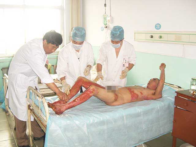 該院創(chuàng)傷外科在科主任寧志文帶領(lǐng)下,于2000年在燒傷臨床中積極引進(jìn)目前在國(guó)內(nèi)外處于領(lǐng)先地位、由我國(guó)著名生命科學(xué)家徐榮祥教授發(fā)明的燒傷皮膚再生醫(yī)療技術(shù),通過(guò)近幾年的臨床實(shí)踐,他們確實(shí)在臨床上驗(yàn)證了用該技術(shù)可使深二度燒傷創(chuàng)面無(wú)疤痕愈合(生理性愈合),淺三度燒傷創(chuàng)面無(wú)須植皮也能自行愈合且愈合后的創(chuàng)面也無(wú)明顯疤痕及功能障礙。于是,他們?cè)跓齻R床中毫不猶豫的徹底放棄了過(guò)去對(duì)深二度和三度燒傷創(chuàng)面采取切、削痂植皮的傳統(tǒng)治療方法,在燒傷臨床治療中完全采用燒傷皮膚再生醫(yī)療技術(shù)并取得了顯著的社會(huì)效益和經(jīng)濟(jì)效益。