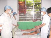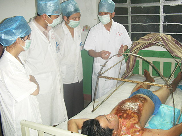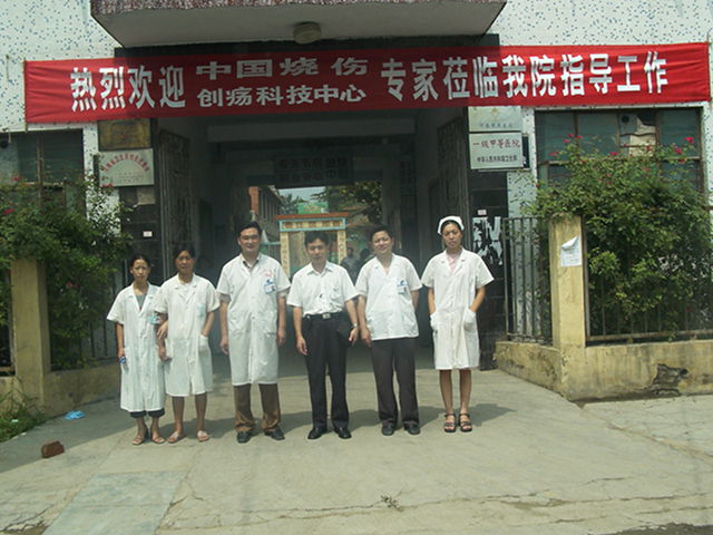 2003年8月22日,中國燒傷創(chuàng)瘍科技中心臨床總部主任王洪生應(yīng)邀來到地處豫北地區(qū)的河南省滑縣第三人民醫(yī)院會診和臨床學術(shù)交流。王主任到達該院后,在該院副院長張文豪和燒傷科主任賈參政及燒傷科醫(yī)護人員陪同下,首先深入燒傷病房為一例74歲的老年重度燒傷合并消化道出血的患者進行了全面體檢,并向陪同的醫(yī)護人員現(xiàn)場示范了對該患者雙足背三度燒傷創(chuàng)面進行"藥刀結(jié)合"處理的方法及技術(shù)要領(lǐng),還就預(yù)防褥瘡的護理要點向在場的醫(yī)護人員進行了重點講述;然后在賈參政主任的引導下,王主任又進入其它燒傷病房對所有住院燒傷患者一一進行了查看,并就這些患者下一步的治療,向現(xiàn)場的醫(yī)護人員進行了詳細講述和臨床指導。查房結(jié)束后,王主任在醫(yī)生辦公室就這例老年重度燒傷合并消化道出血患者下一步的治療提出了詳細的治療計劃。隨后,王主任又在該醫(yī)院院長辦公室與專程趕到的該縣衛(wèi)生局主管業(yè)務(wù)的副局長、該院院領(lǐng)導班子成員及燒傷科主任就該院下一步燒傷重點專科建設(shè)、技術(shù)支持等問題進行了廣泛而深入的交流。 中國燒傷創(chuàng)瘍科技中心臨床部