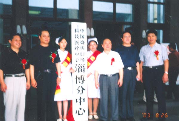 2003年8月26日淄博市中心醫(yī)院洋溢著歡樂(lè)的節(jié)日氣氛,上午九時(shí)在音樂(lè)和鞭炮聲中舉行了隆重而簡(jiǎn)樸的掛牌儀式,慶祝中國(guó)燒傷創(chuàng)瘍科技中心淄博分中心成立。淄博市衛(wèi)生局黨委書(shū)記、局長(zhǎng)趙亦成和中國(guó)燒傷創(chuàng)瘍科技中心主任肖摩發(fā)表了熱情的講話,美寶國(guó)際集團(tuán)魯豫部總裁常玉秋、山東省首席執(zhí)行官王寶學(xué),泰山醫(yī)學(xué)院附屬醫(yī)院燒傷科主任王廣順,淄博市以及周遍地區(qū)各級(jí)醫(yī)療單位、廠礦、部隊(duì)等醫(yī)院的領(lǐng)導(dǎo)、科主任到會(huì)祝賀。淄博市中心醫(yī)院部分醫(yī)護(hù)人員愉快的參加了掛牌儀式。