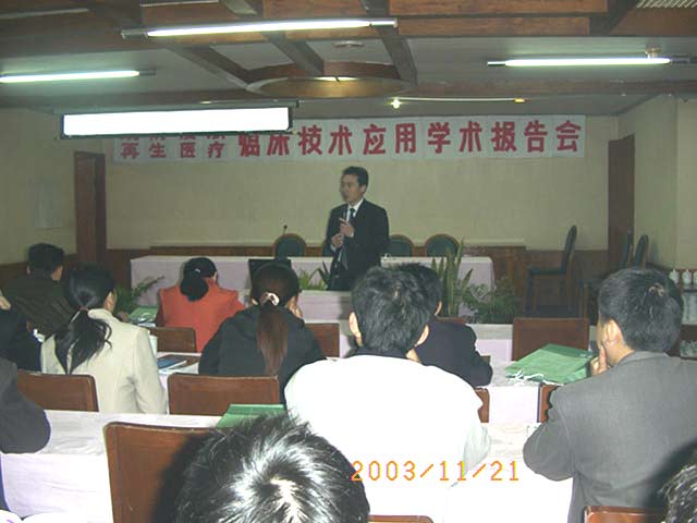 2003年11月21日上午9時(shí),王主任又應(yīng)四川省內(nèi)江市醫(yī)學(xué)會(huì)的邀請(qǐng),在內(nèi)江賓館二樓會(huì)議室參加由內(nèi)江市醫(yī)學(xué)會(huì)組織的再生醫(yī)療技術(shù)臨床應(yīng)用學(xué)術(shù)報(bào)告會(huì)并就燒傷再生醫(yī)療技術(shù)在大面積燒傷和創(chuàng)瘍類疾病中的臨床應(yīng)用等問(wèn)題作了專題學(xué)術(shù)報(bào)告。來(lái)自四川省內(nèi)江市第一、第二人民醫(yī)院燒傷整形科的專家和內(nèi)江市3縣4區(qū)15家醫(yī)療單位相關(guān)專業(yè)的40名醫(yī)護(hù)人員參加了本次學(xué)術(shù)報(bào)告會(huì)。