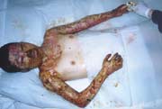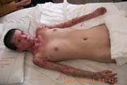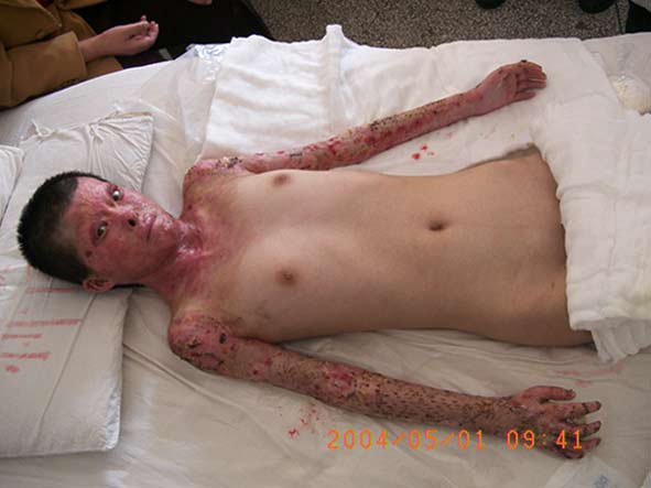 自2004年5月1日以來,中國燒傷創(chuàng)瘍科技中心臨床總部主任王洪生應(yīng)邀到云南、陜西兩省多家醫(yī)院進(jìn)行會診、講學(xué)和臨床學(xué)術(shù)交流。 2004年5月1日,王主任在云南省潞西市人民醫(yī)院為一例已采用燒傷皮膚再生醫(yī)療技術(shù)治療50天燒傷總面積達(dá)90%TBSA(三度面積達(dá)75%)的成人大面積深度燒傷患者會診后,又應(yīng)邀來到大理州人民醫(yī)院燒傷科為一例小兒深度燒傷患者會診,并再次為先期會診過的一例采用燒傷皮膚再生醫(yī)療技術(shù)已治愈的小兒大面積深度燒傷患者康復(fù)期的治療進(jìn)行了指導(dǎo)。