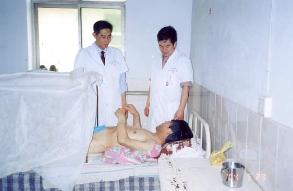 人才是根本、技術(shù)是力量、設(shè)備是條件。我院不僅注重人才的培養(yǎng)、教育,而且十分重視新技術(shù)、新療法的引進和開展應(yīng)用。開通了遠程醫(yī)療會診,經(jīng)常邀請市級、省級和國家級專家教授到我院會診和講學(xué),使我院的醫(yī)療技術(shù)水平始終處于領(lǐng)先地位。特別是1994年,我院學(xué)習(xí)、引進了我國青年科學(xué)家徐榮祥教授研制發(fā)明的"燒傷濕潤暴露療法"(燒傷皮膚再生醫(yī)療技術(shù)---BRT),成功應(yīng)用于臨床,該療法具有治療過程中病人痛苦小、愈合好、費用低、手術(shù)少、殘廢少、不毀容等優(yōu)點。近十年來我院應(yīng)用燒傷皮膚再生醫(yī)療技術(shù)成功治療各種燒傷創(chuàng)瘍患者一千多例,其中重度、特重度燒傷(30~80%TBSA)一百多例,取得了十分顯著的效果,受到了當(dāng)?shù)厝嗣袢罕娂盎颊叩囊恢潞迷u。以下是我們近期應(yīng)用燒傷再生醫(yī)療技術(shù)成功治療的幾例大面積特重度燒傷患者: 2003年7月28日,我院收治了兩例特重度燒傷患者,哥哥22歲,弟弟21歲,因工作中不慎被酸化學(xué)燒傷全身多處,哥哥的燒傷面積達80%(TBSA=80%,深I(lǐng)I度45%,淺II度35%),弟弟燒傷面積70%(TBSA=70%,淺III度8%,深I(lǐng)I度32%,淺II度30%)。入院后我們立即采用燒傷皮膚再生醫(yī)療技術(shù)進行搶救治療,給予有效的抗休克、抗感染、強心、保護臟器功能等全身治療,創(chuàng)面涂上美寶濕潤燒傷膏后,患者痛苦明顯減輕,逐漸安靜下來了。經(jīng)過40天的積極治療,創(chuàng)面不需要植皮實現(xiàn)了皮膚原位再生,沒有毀容和殘廢,兩兄弟的總費用僅3萬多元,患者、家屬、單位對治療結(jié)果非常滿意。
