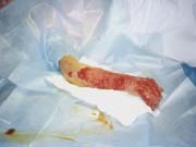 2004年5月31日,經(jīng)過(guò)18天(傷后27天)燒傷再生醫(yī)療技術(shù)的創(chuàng)面規(guī)范處理,創(chuàng)面壞死組織基本實(shí)現(xiàn)了無(wú)損傷性液化排除,大部分創(chuàng)面被新生肉芽組織覆蓋。但是,由于燒傷深度非常深,淺層壞死組織液化清除后,食指、中指、無(wú)名指、小指的伸肌腱外露并有壞死的表現(xiàn),掌骨、指骨、掌指關(guān)節(jié)、指間關(guān)節(jié)外露,由此可以看出該創(chuàng)面的損傷非常深而且很?chē)?yán)重?萍贾行牡年愔魅卧俅蝸(lái)到該院,制定了創(chuàng)面處理原則:1、給創(chuàng)面創(chuàng)造生理濕潤(rùn)環(huán)境,保護(hù)外露的肌腱、骨骼和關(guān)節(jié);2、供給充足的營(yíng)養(yǎng)物質(zhì)和生命再生物質(zhì),盡最大可能挽救間生態(tài)組織,實(shí)現(xiàn)肌腱、關(guān)節(jié)囊再生;3、促進(jìn)周?chē)掀ず蛙浗M織的生長(zhǎng),覆蓋裸露的骨骼、肌腱和關(guān)節(jié)腔,為下一階段有必要做的皮膚移植創(chuàng)造條件.
