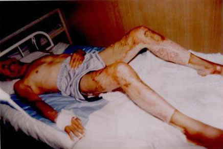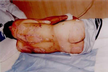 該院最近又成功地救治一例特重度燒傷病人,患者黃某,男性,51歲,于2004年7月29日下午4時(shí)被水泥窯噴窯熱氣燒傷全身多處,傷后30分鐘入院,總面積63%,其中淺Ⅱ度27%、深Ⅱ度30%、Ⅲ度5%。面積分布為頭面頸部,雙上肢,軀干部,臀部,及雙下肢創(chuàng)面有大量水皰,其中雙下肢創(chuàng)面蒼白,呈皮革樣改變,痛覺消失,鼻黏膜蒼白,聲音嘶啞,診斷:1、特重度燒傷、2、中度吸入性損傷、治療:1、抗休克、2、抗感染、營養(yǎng)支持。3、創(chuàng)面全程應(yīng)MEBT/MEBO、4、霧化吸入、5、預(yù)防各種并發(fā)癥。6、對(duì)深度創(chuàng)面進(jìn)行耕耘減張,充分發(fā)揮美寶濕潤燒傷膏的藥理作用,創(chuàng)造生理性濕潤環(huán)境,挽救間生態(tài)組織,激活潛能再生細(xì)胞,通過無損傷地液化排除壞死組織,培植組織干細(xì)胞,實(shí)現(xiàn)組織器官的原位再生修復(fù),達(dá)到無瘢痕愈合。 中國燒傷創(chuàng)瘍科技中心臨床部金黨軍主任于8月16日接到會(huì)診電話后及時(shí)趕到該院,結(jié)合臨床對(duì)大面積燒傷病人Ⅲ度創(chuàng)面的處理作了示范指導(dǎo)。目前,剩余部分Ⅲ度創(chuàng)面正在治療中。 |