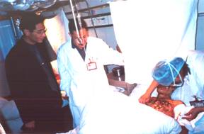 陳主任在燒傷科廖文倫主任的帶領(lǐng)下巡視病房并指導(dǎo)深度燒傷創(chuàng)面的處理 |