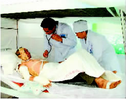 從北京來的臨床專家陳永翀醫(yī)師和汕頭海軍醫(yī)院的醫(yī)生正在為陳基成老人作會(huì)診 |